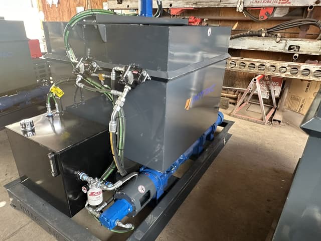 **PRICE REDUCED** **NEW** **3 UNITS AVAILABLE** **$22,000/EA** **FREE SHIPPING TO CONTINENTAL USA* New progressive cavity grout pump with mixing capabilities, gasoline motor powers hydraulic system. Machine has agitator/mixer in holding hopper, 1.5 CY hopper, mounted on a forklift skid base for easy transport around a job site. Variable speed and forward/reverse function. Great for mixes delivered with ready-mix truck, or a mixing paddle can be purchased from Intric Grouting Solutions to convert to mixer/pump.