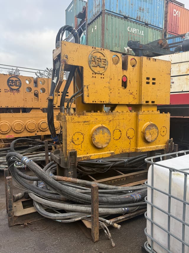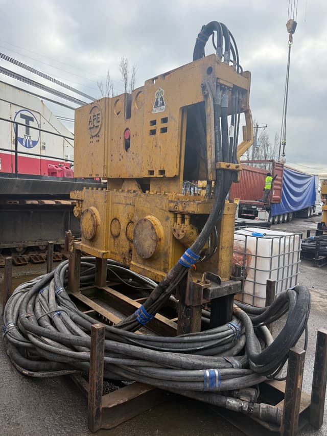 Used APE 300 Vibratory Hammer – Fully Serviced | Power Pack & Sheet Pile Clamp Included Short Description Used APE 300 vibratory hammer in good working condition. Fully serviced and ready for use. Supplied complete with power pack and sheet pile clamp. Ideal for piling and foundation projects.