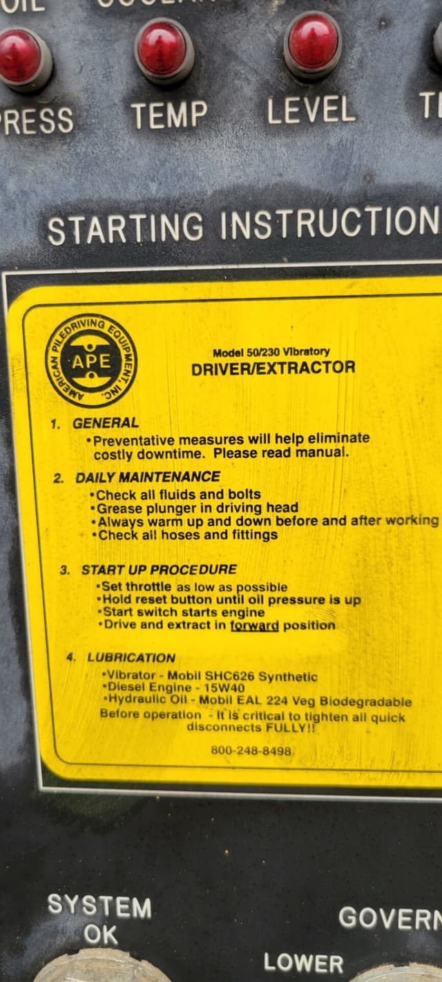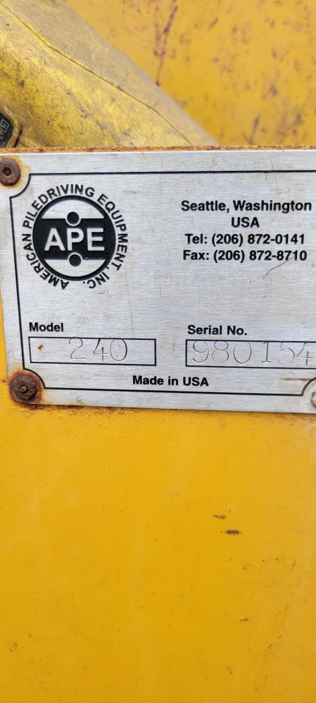 Description: Used APE100 vibro hammer This Ape 100 vibro hammer comes with a powepack and remote to run a power pack Power pack has 3532 hours It also includes 100ft of hoses and model 150 jaws Recently fully rebuilt.
